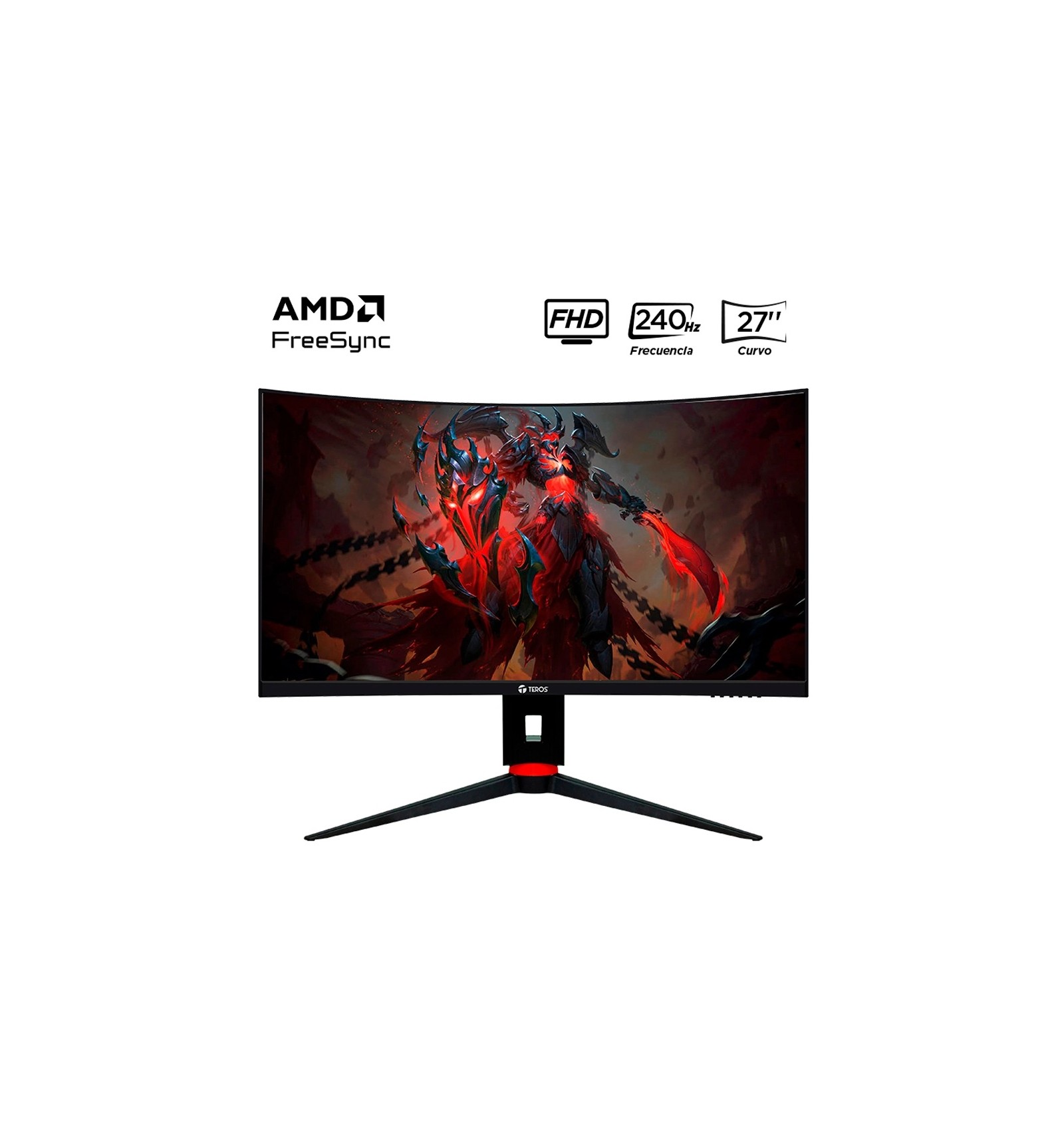 Monitor Gamer Teros 27'' Curvo 1080p 240hz 1ms Te 2764g Negro El monitor curvo TEROS TE 2764G de 27 pulgadas ofrece una experiencia visual inmersiva con su pantalla curva 1500R y resolución Full HD (1920 x 1080). Disfruta de colores vibrantes gracias a su contraste de 3,000:1 y brillo de 300 cd/m², con ángulos de visión amplios de 178°. Ideal para gamers, con una tasa de refresco de 240Hz y tiempo de respuesta de 1 ms. Incluye HDMI 2.1, DisplayPort 1.4, tecnología Flicker Free, Low Blue Light y HDR10. ESPECIFICACIONES: Marca: Teros Modelo: TE 2764G Tipo de Panel: VA Tipo de retroiluminación: LED Tamaño de Pantalla: 27" Es curvo: Si, 1500R Resolución: 1920 x 1080 (FULL HD) Relación de Aspecto: 16:9 Angulo de Visión: 178° / 178° (H / V) Colores Desplegables: 16.7 Millones de Colores Contraste: 3000:1 Brillo: 300 cd/m² Tiempo de Respuesta: 1ms Frecuencia de Actualización: 240Hz Entradas: 2x DisplayPort / 2x HDMI Speaker: No Soporta VESA: Si (100 x 100 mm) Tecnología de pantalla: FreeSync SKU 782752506183