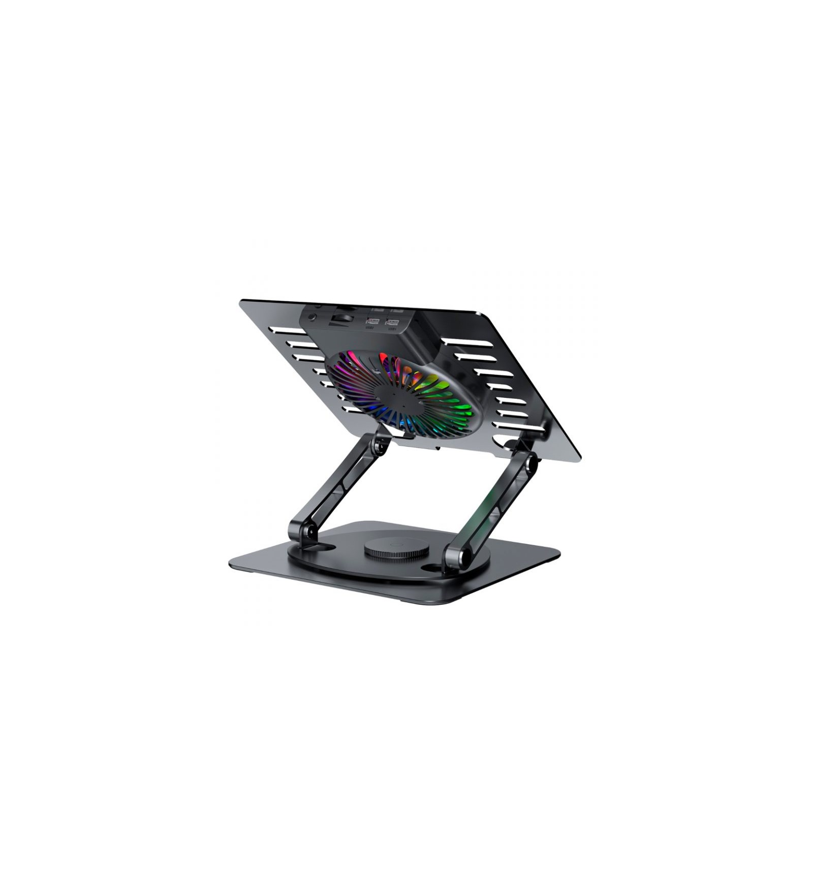 Optimiza el rendimiento de tu laptop con el Cooler para Notebook Teros TE-7132N. Fabricado en aleación de aluminio y silicona, ofrece soporte de hasta 8 kg y compatibilidad con dispositivos de hasta 15.6″. Su diseño incluye 10 modos RGB, rotación 360°, doble puerto USB y control de velocidad con 1200 ± 10% RPM. Compacto (24 x 22 x 5.8 cm) y potente, asegura un flujo de aire eficiente (26 CFM) para máxima refrigeración y estilo.