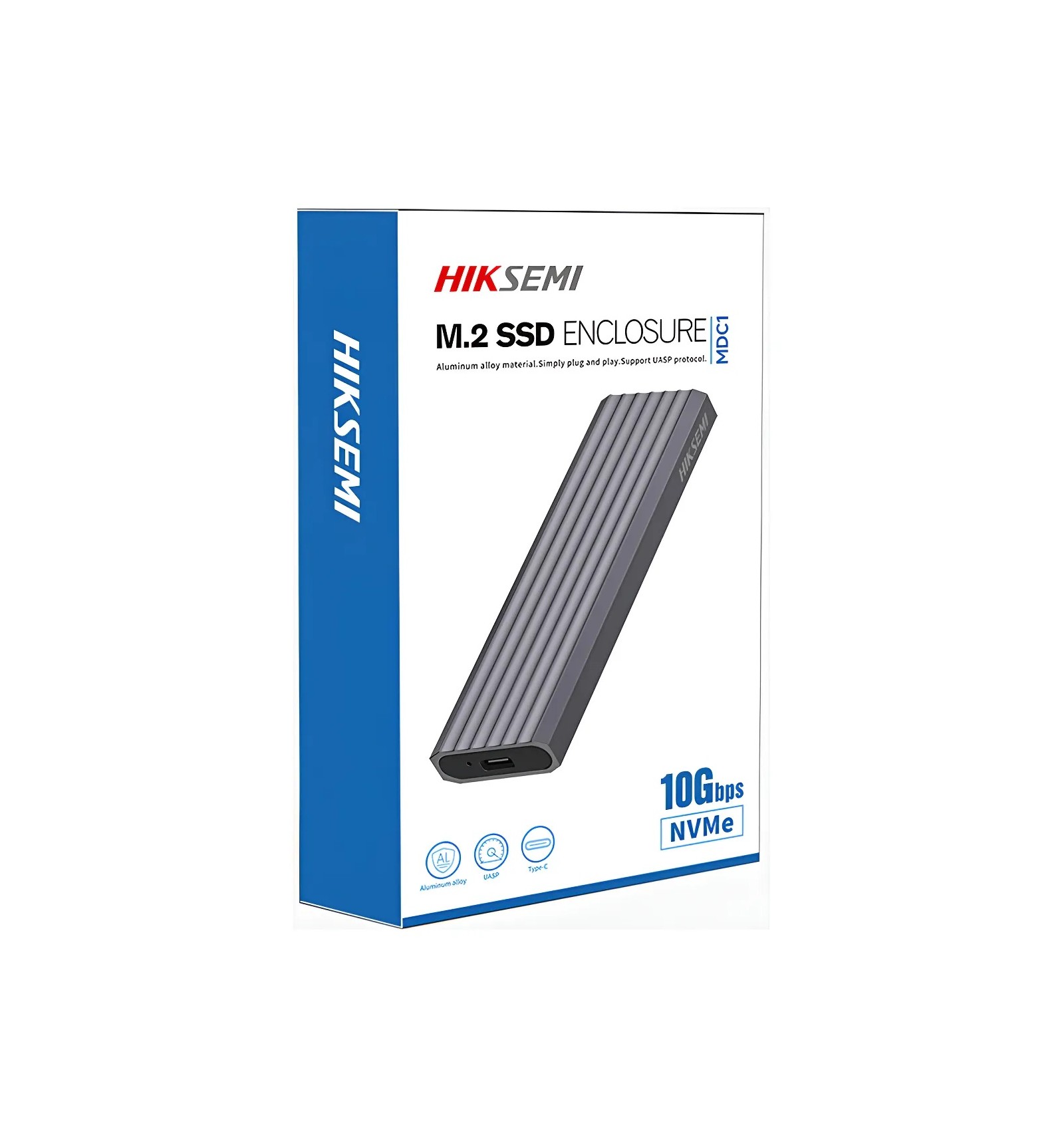 Case para SSD M.2 USB-C Hiksemi MDC1 Excelente Carry Disk Externo super resistente de aluminio Sistemas compatibles: Windows/MacOS/Linux/Android NVMe soportado: 2230, 2242, 2260 y 2280 • Descripción del producto: Experimenta velocidades de transferencia ultrarrápidas de hasta 10 Gbps con nuestra carcasa para SSD M.2. Con un diseño que elimina la necesidad de controladores, esta carcasa es compatible con múltiples sistemas operativos, garantizando una fácil instalación y uso sin complicaciones. Disfruta de un rendimiento óptimo con nuestra carcasa para SSD M.2, que cuenta con una eficiente disipación de calor para operar a temperaturas más bajas. Fabricada con un cuerpo de aleación de aluminio y equipada con almohadillas de silicona termoconductora, nuestra carcasa garantiza una óptima refrigeración para mantener tu SSD en condiciones óptimas de funcionamiento.