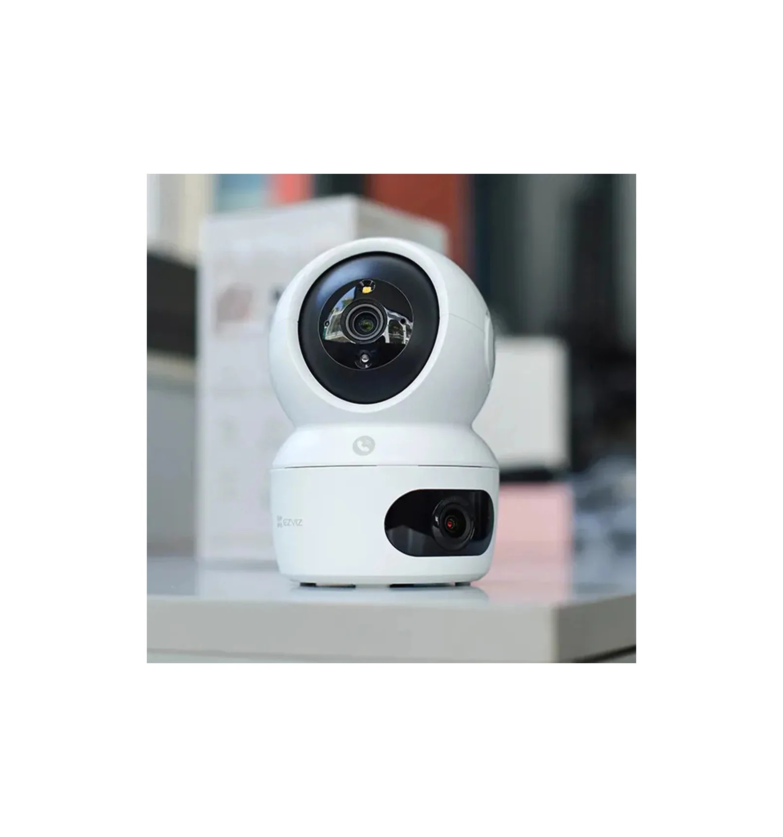 La EZVIZ H7c Dual 2K combina dos lentes en una sola cámara: una para ver todo el ambiente y otra que sigue automáticamente cualquier movimiento. Ideal para proteger hogares, oficinas o comercios, con video en alta calidad, alertas inteligentes, visión nocturna a color y audio bidireccional.